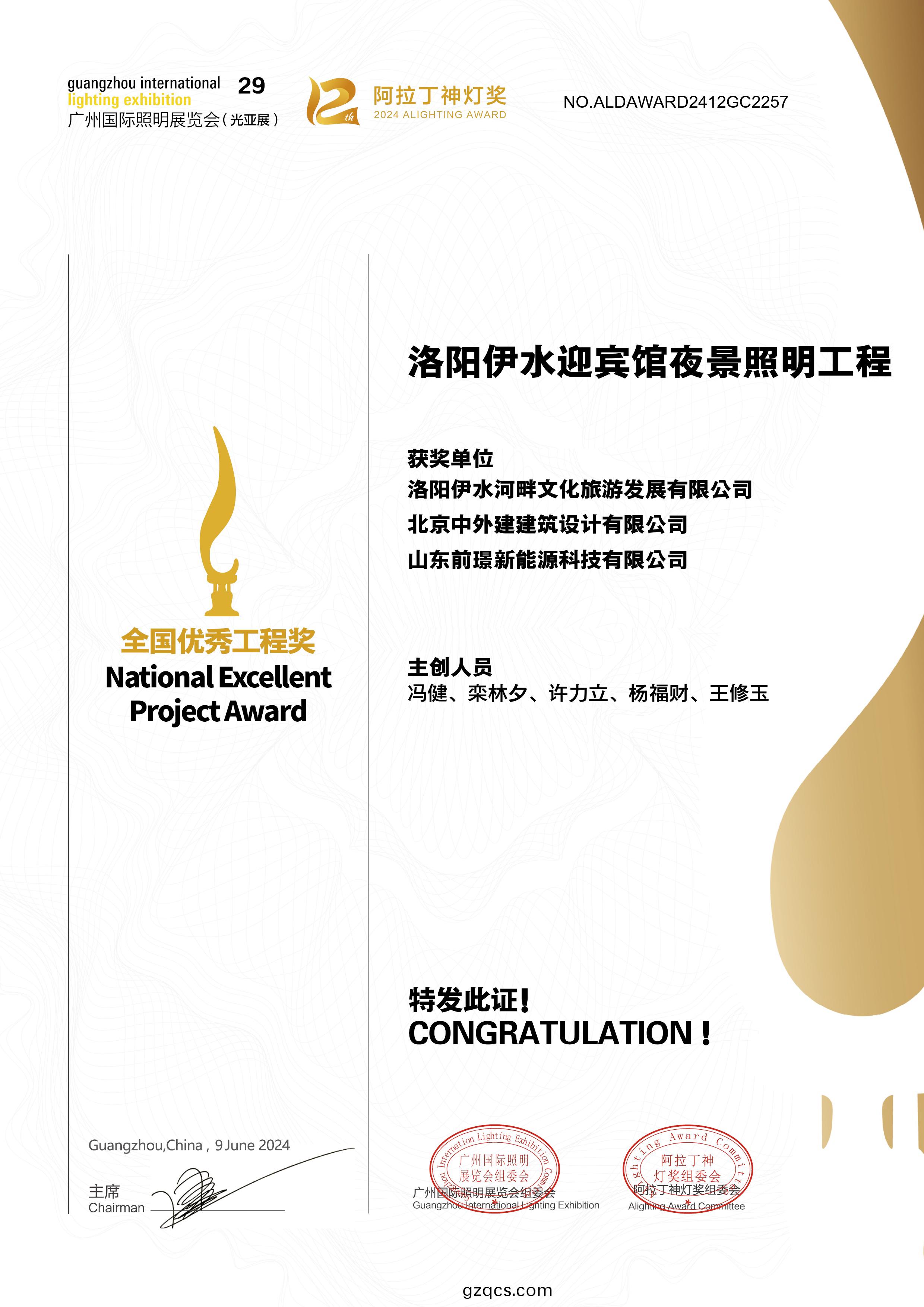 恭喜洛陽伊水迎賔館項目(mu)榮穫阿拉(la)丁神燈獎
